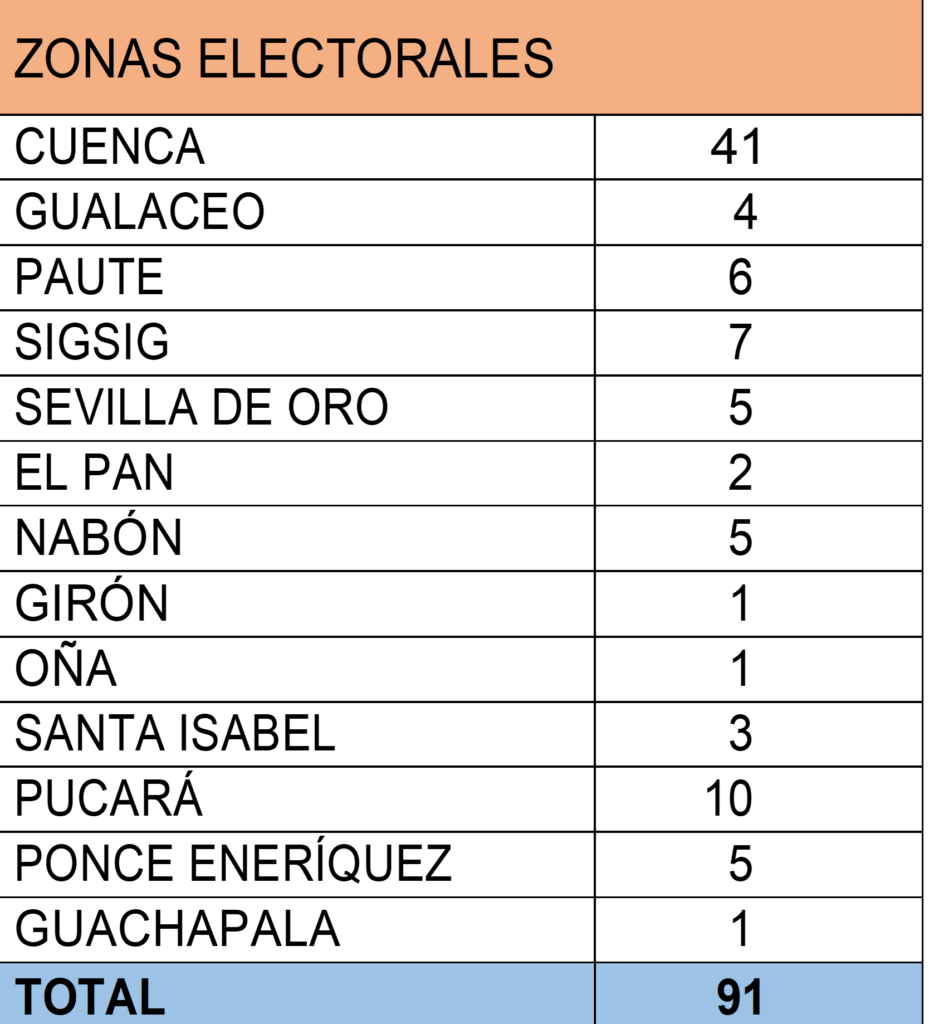 El Pleno del Consejo Nacional Electoral, el pasado 11 de marzo, resolvió aprobar la creación de una nueva zona electoral en la provincia del Azuay y está ubicada en la comunidad San Antonio de Maluay de la parroquia El Valle del cantón Cuenca.
