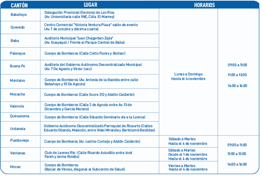 Con el propósito de fortalecer los conocimientos y responsabilidades asignadas a los MJRV, las jornadas de capacitación continuarán de manera ininterrumpida durante el feriado del 1 al 4 de noviembre, en los puntos fijos habilitados en los 13 cantones de la provincia.