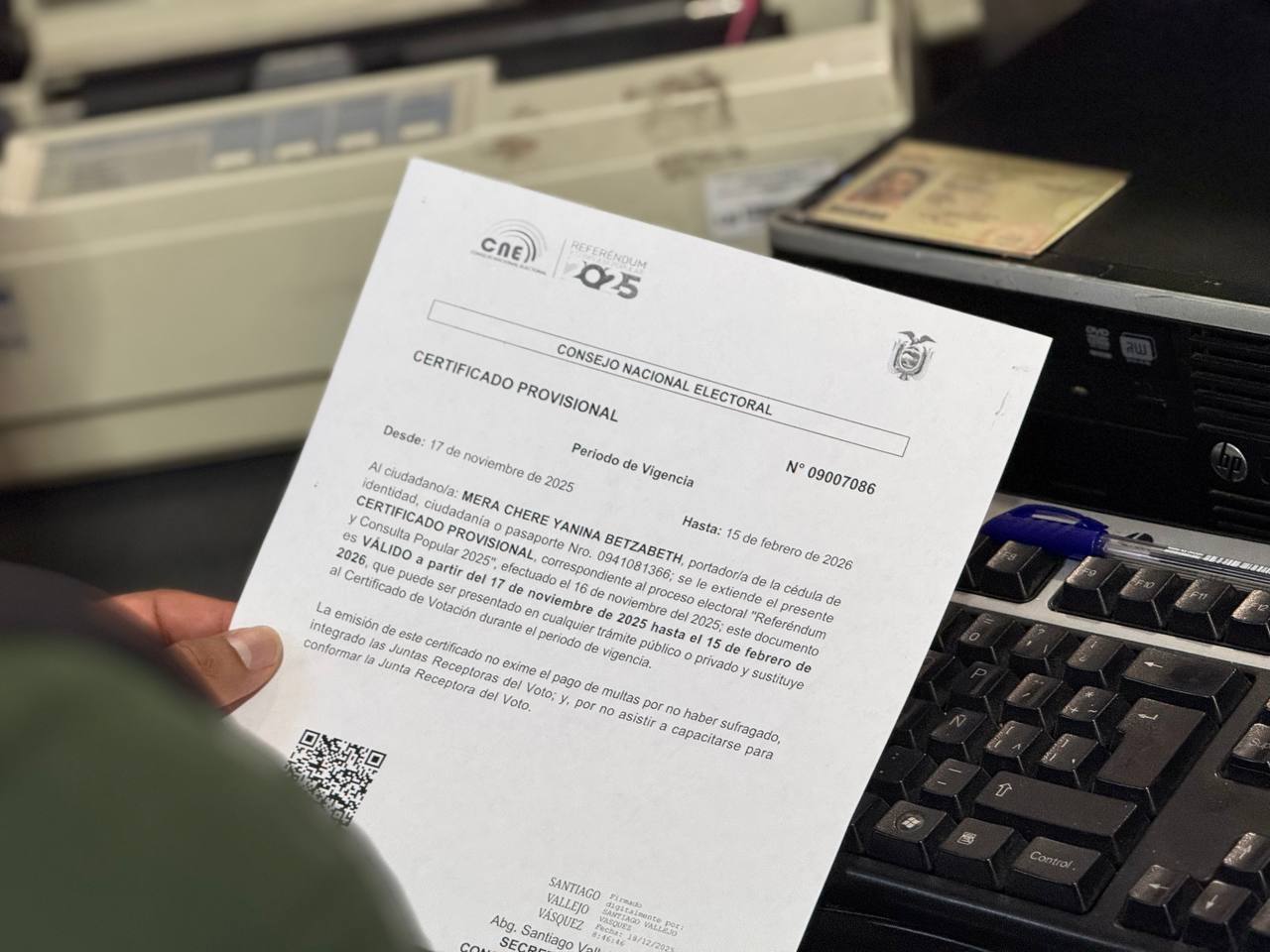 El Certificado Provisional de Votación es un documento temporal, válido por 90 días, que permite realizar trámites cuando el ciudadano no cuenta con su certificado