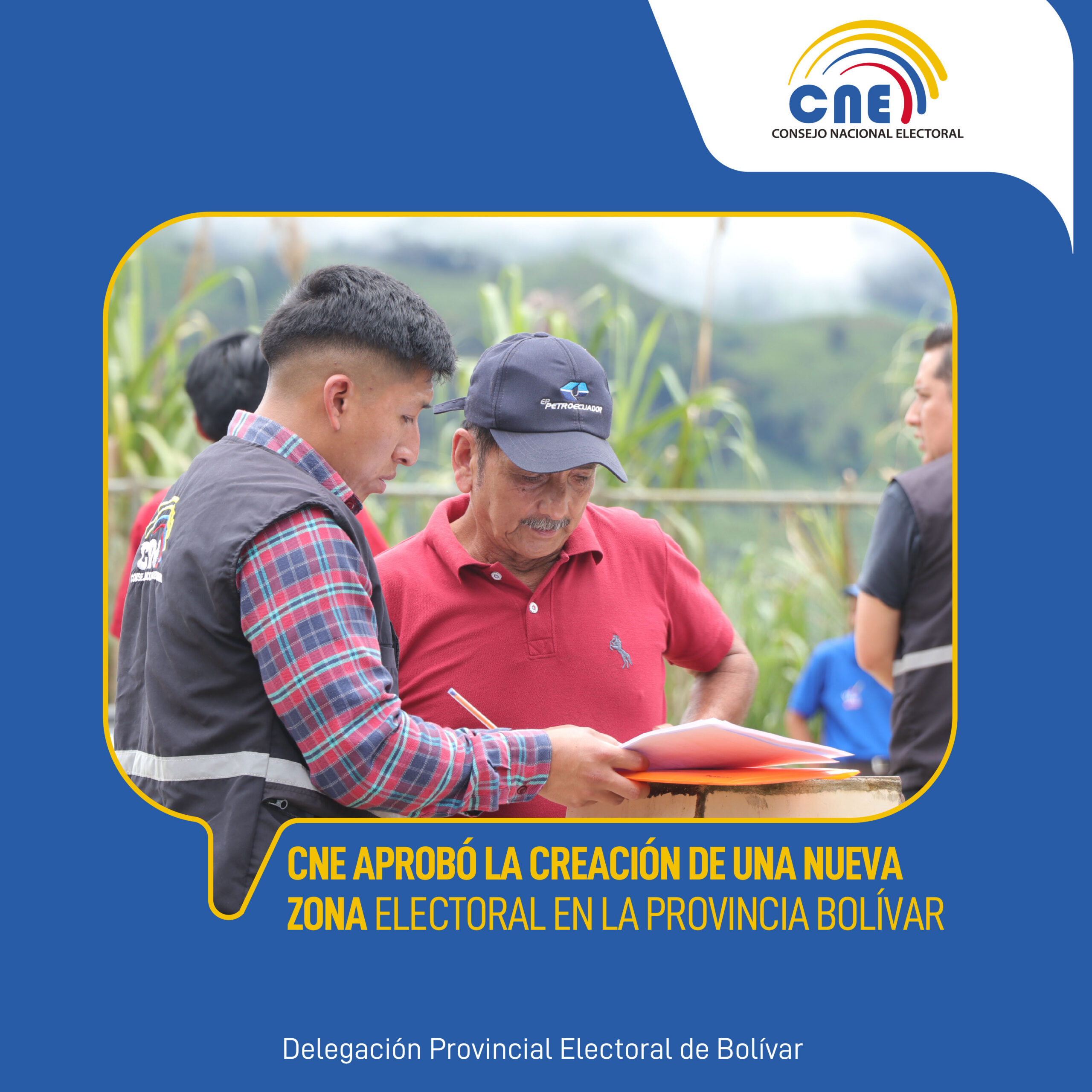 El Pleno del Consejo Nacional Electoral aprobó la creación de una nueva zona electoral en San Luis de Ungubí, perteneciente a la parroquia San Vicente del cantón San Miguel, provincia de Bolívar. Esta decisión tiene como finalidad acercar el recinto de votación a los habitantes del sector y garantizar el