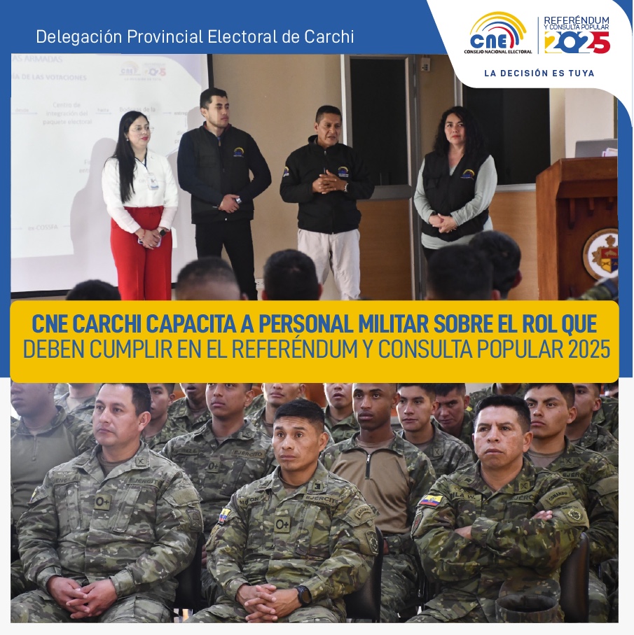 CNE Carchi capacita a personal militar sobre el rol que deben cumplir en el Referéndum y Consulta Popular 2025
