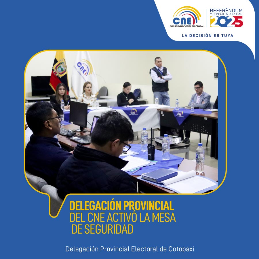 La Mesa de Seguridad Electoral para el Referéndum y Consulta Popular 2025 se activó este lunes 27 de octubre en Cotopaxi. En el encuentro, participaron distintas entidades de la provincia para coordinar el apoyo y las contingencias necesarias para el proceso electoral que se llevará a cabo el 16 de