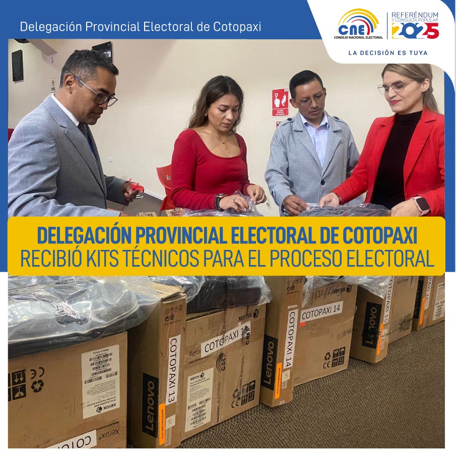 La mañana del martes 28 de octubre la delegación Provincial del Consejo Nacional Electoral (CNE) de Cotopaxi, recibió 55 kits técnicos para el desarrollo del proceso electoral. Los kits fueron transportados por miembros de las Fuerzas Armadas y llegaron sellados. A su arribo la directora provincial del CNE, Verónica Benavides,