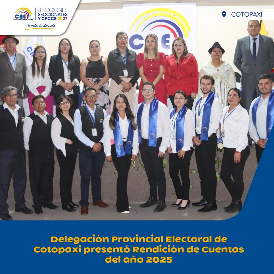 La Delegación Provincial Electoral de Cotopaxi realizó este martes 14 de abril el evento de Rendición de Cuentas correspondiente al ejercicio fiscal 2025, donde se informó sobre la gestión institucional, la cual estuvo enfocada en la organización de las Elecciones Generales y el Referéndum y Consulta Popular 2025, garantizando el