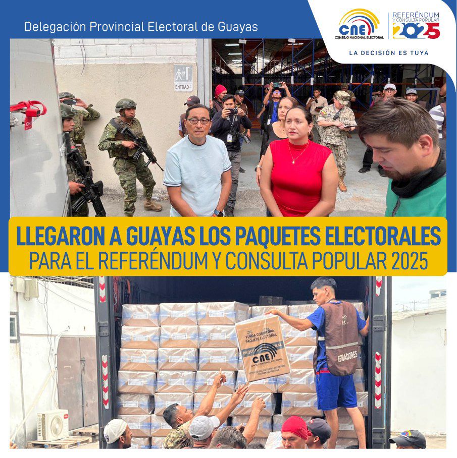 LLEGARON A GUAYAS LOS PAQUETES ELECTORALES PARA EL REFERÉNDUM Y CONSULTA POPULAR 2025
