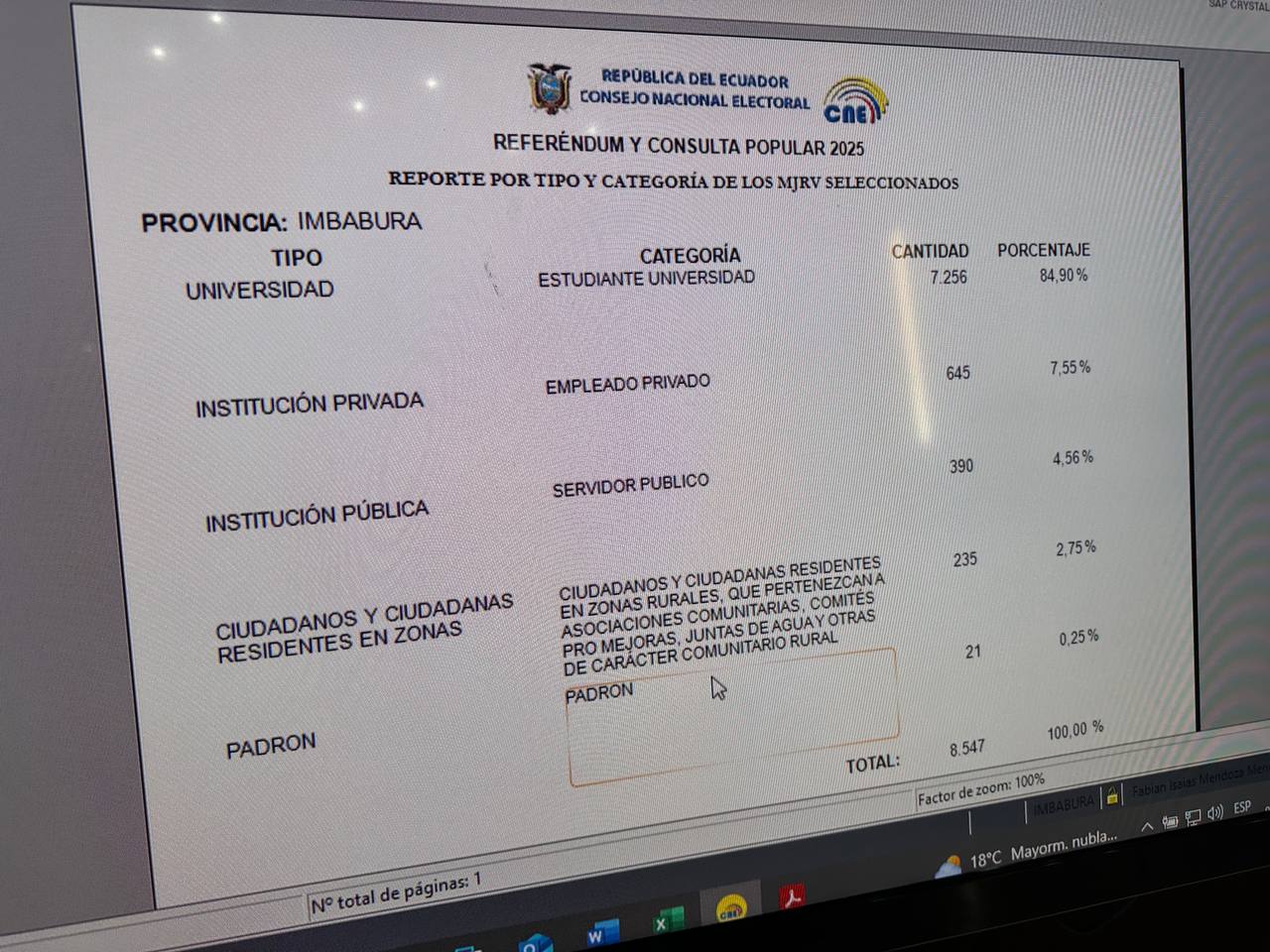 IMBABURA DESIGNÓ 8.547 MIEMBROS DE JUNTAS RECEPTORAS DEL VOTO PARA EL REFERÉNDUM Y CONSULTA POPULAR 2025