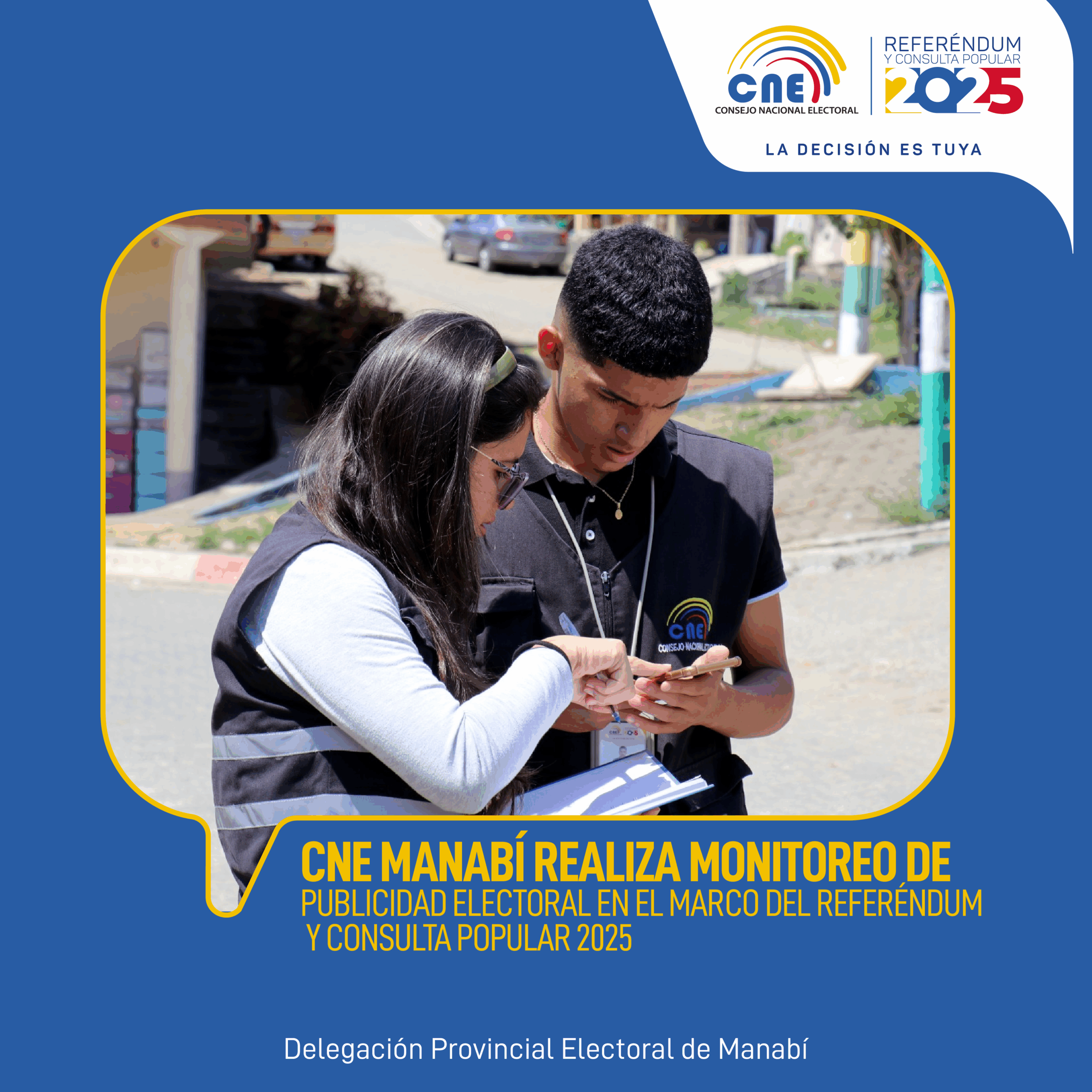 CNE Manabí realiza monitoreo de publicidad electoral en el marco del Referéndum y Consulta Popular 2025