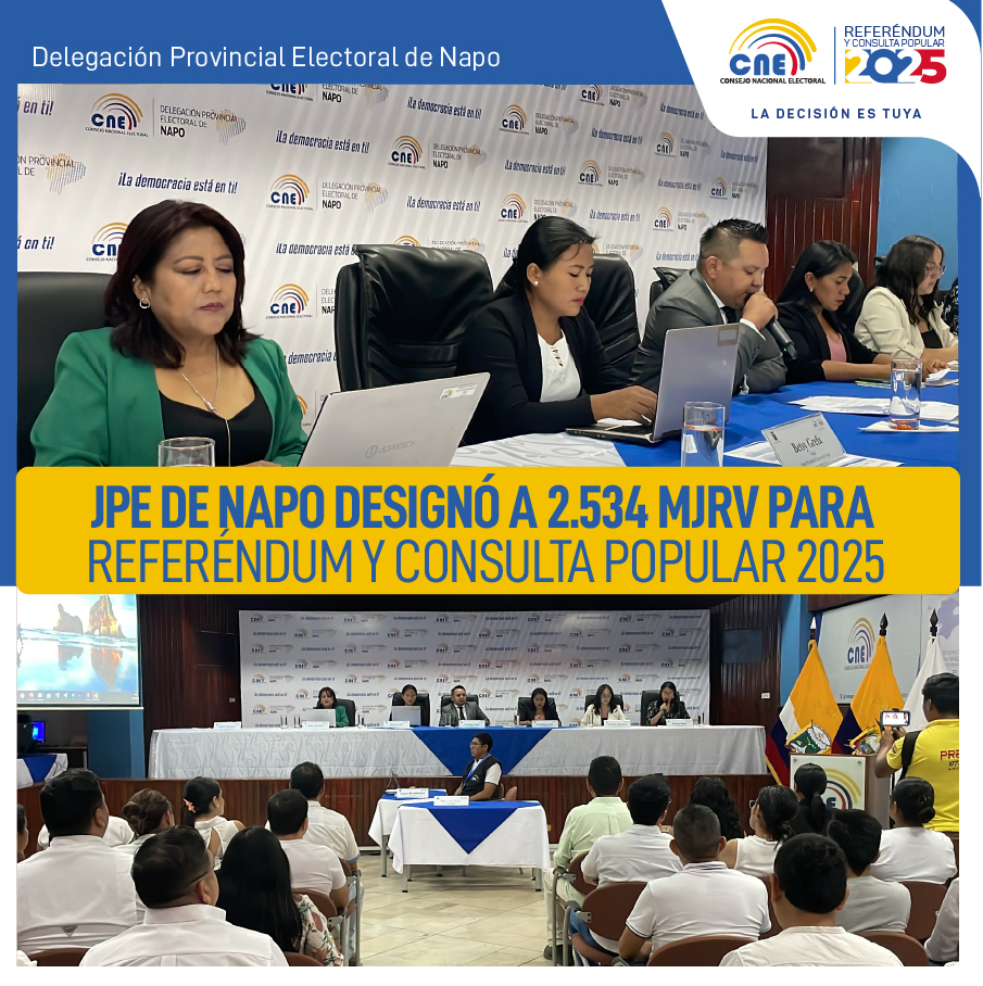 Junta Provincial Electoral de Napo designó a 2.534 ciudadanos como Miembros de las Juntas Receptoras del Voto para Referéndum y Consulta Popular 2025