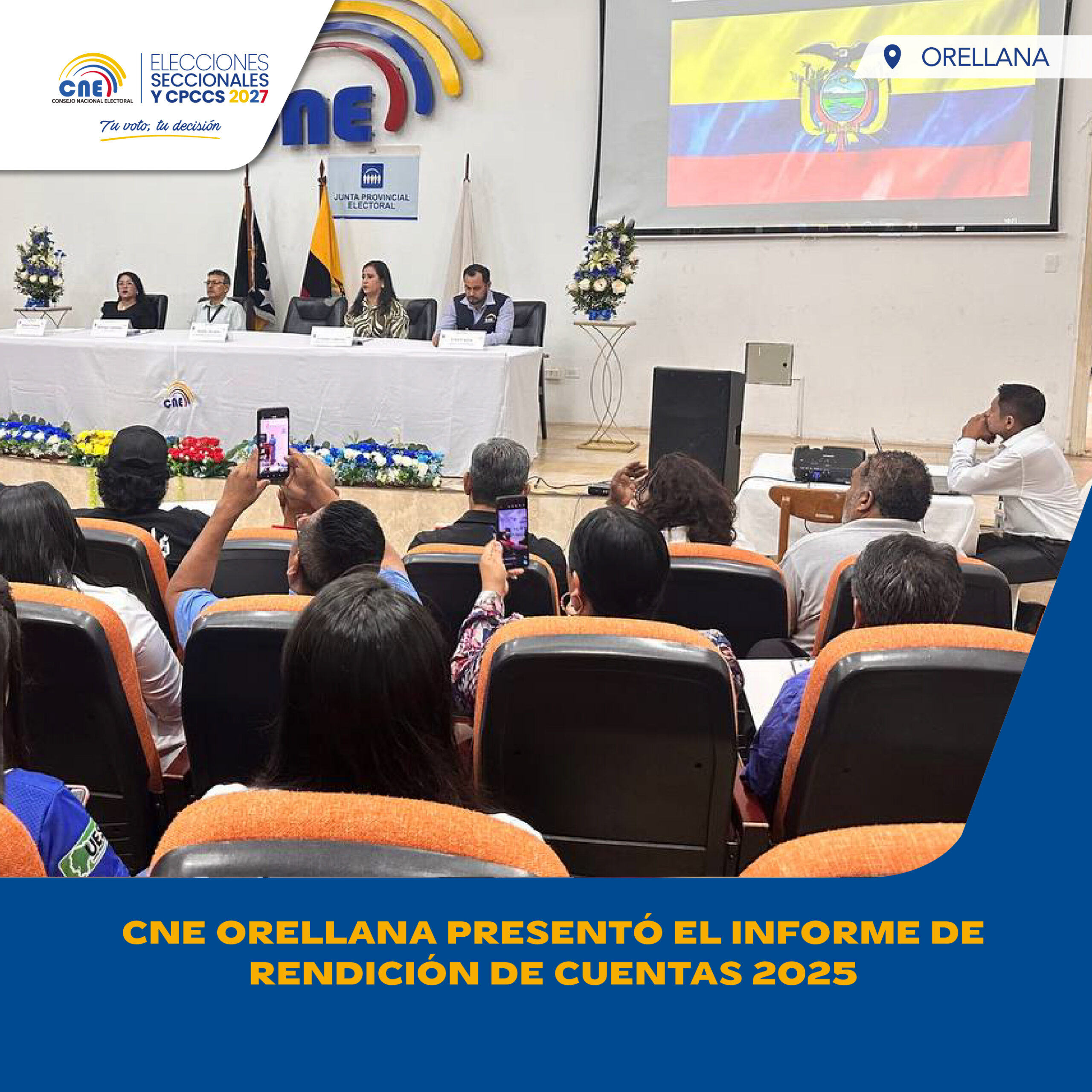En cumplimiento a lo establecido en el artículo 90 y 95 de la Ley Orgánica de Participación Ciudadana, y con el fin de transparentar el uso de bienes y recursos públicos, la Delegación Provincial Electoral de Orellana, realizó este 17 de abril de 2026, la Rendición de Cuentas del periodo fiscal 2025.