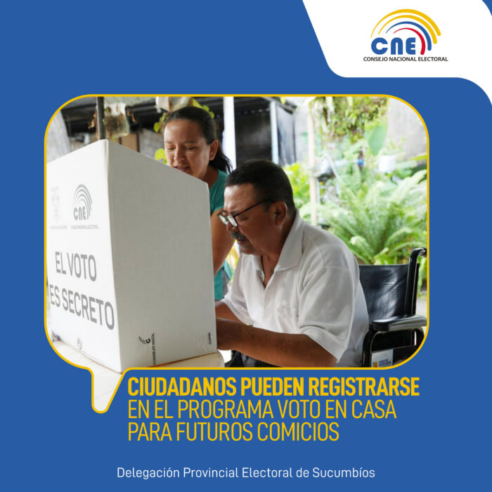 La Delegación Provincial Electoral de Sucumbíos mantiene habilitado el proceso de inscripción al programa Voto en Casa, una modalidad que permite a las personas con discapacidad ejercer su derecho al sufragio desde su domicilio en próximos procesos electorales. Este beneficio está dirigido a ciudadanos mayores de 50 años que registren