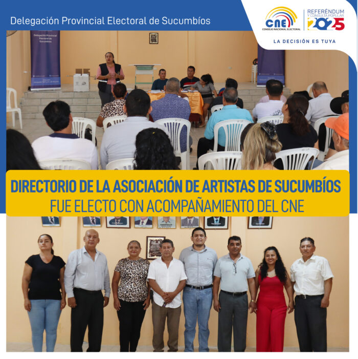 Este domingo, 28 de septiembre, la Delegación Provincial Electoral de Sucumbíos brindó asistencia técnica y veeduría durante la elección del nuevo directorio de la Asociación de Artistas Profesionales de Sucumbíos. Previo al día de la votación, el personal técnico del Consejo Nacional Electoral (CNE) llevó a cabo la coordinación y