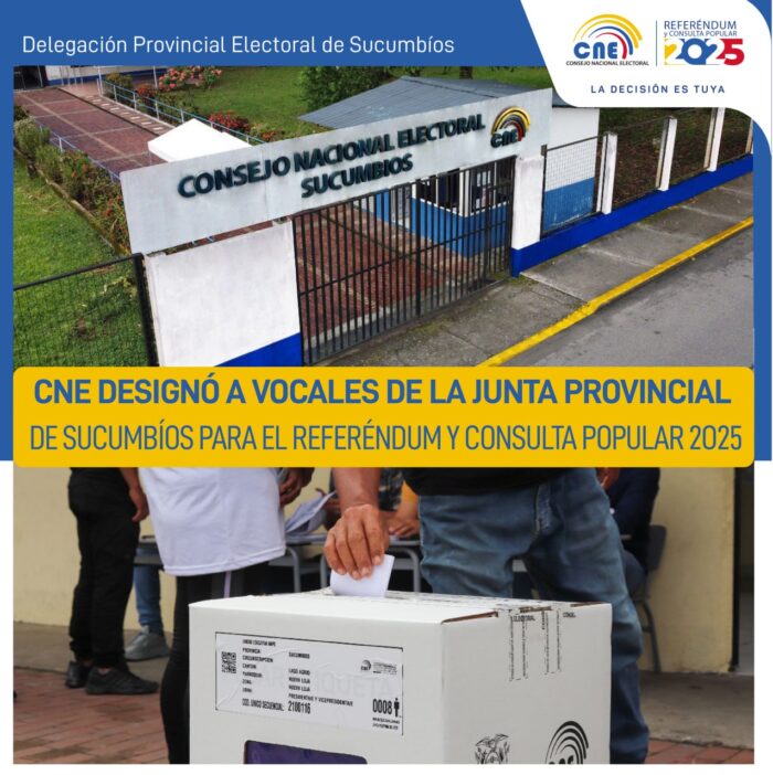 CNE designó a vocales de la Junta Provincial Electoral de Sucumbíos para el Referéndum y Consulta Popular 2025