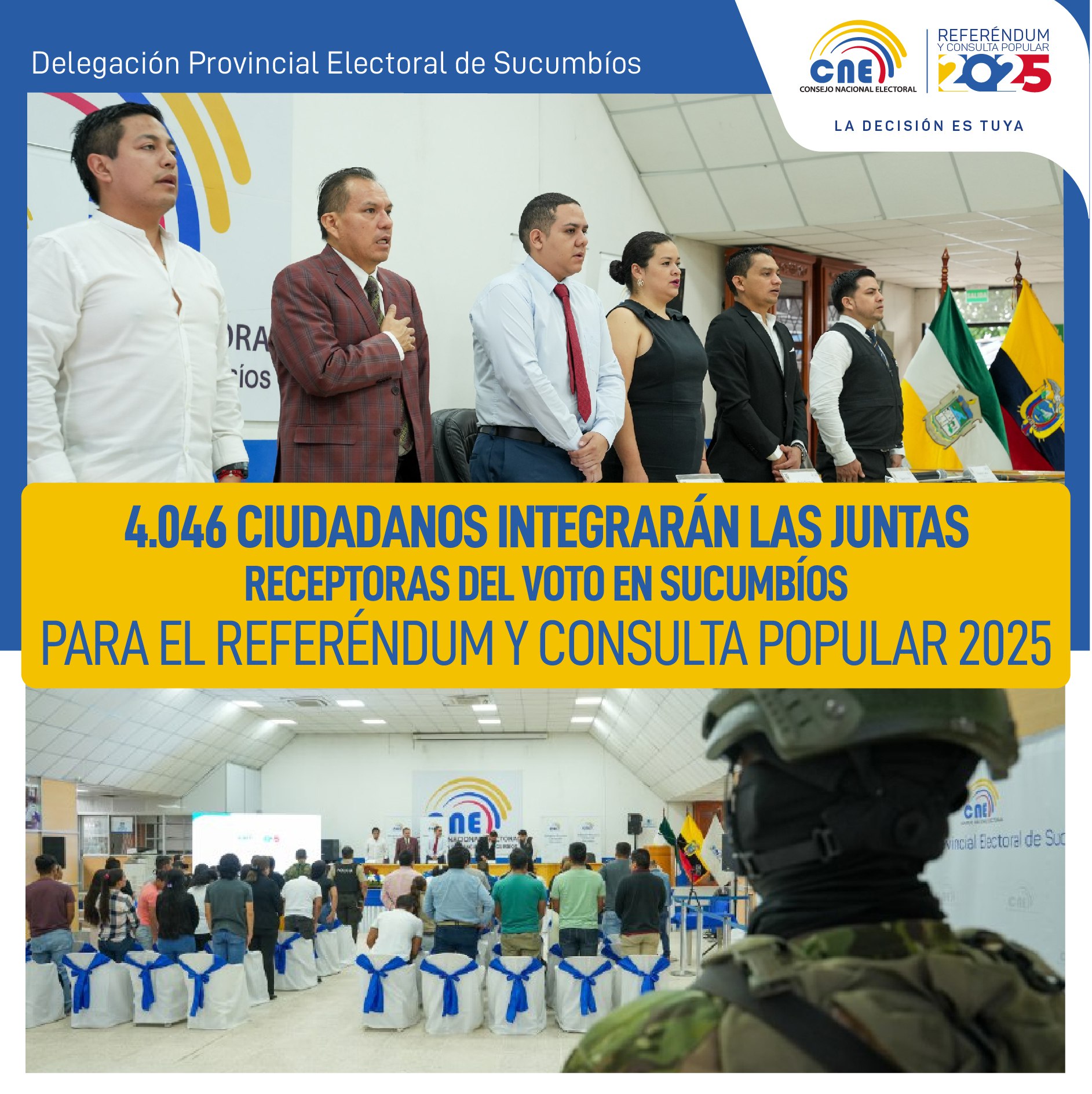 4.046 ciudadanos integrarán las Juntas Receptoras del Voto en Sucumbíos para el Referéndum y Consulta Popular 2025