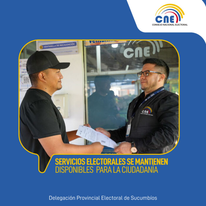 La Delegación Provincial Electoral de Sucumbíos informa a la ciudadanía que todos los servicios electorales continúan operativos y disponibles para su atención regular. La institución mantiene sus canales habilitados para garantizar que los trámites se realicen con oportunidad y seguridad. La atención presencial se brinda en nuestras oficinas ubicadas en