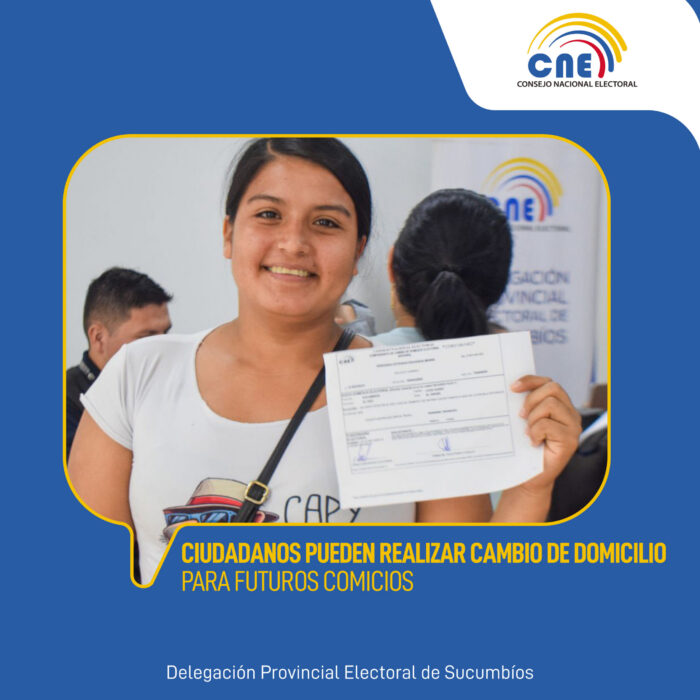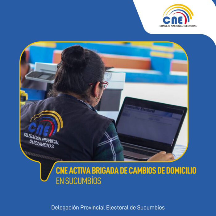 La Delegación Provincial Electoral de Sucumbíos informa que se activará una brigada especial de cambios de domicilio electoral en los cantones Lago Agrio y Cascales, con el fin de facilitar que los ciudadanos actualicen su lugar de votación y puedan ejercer su derecho en un recinto cercano a su residencia.